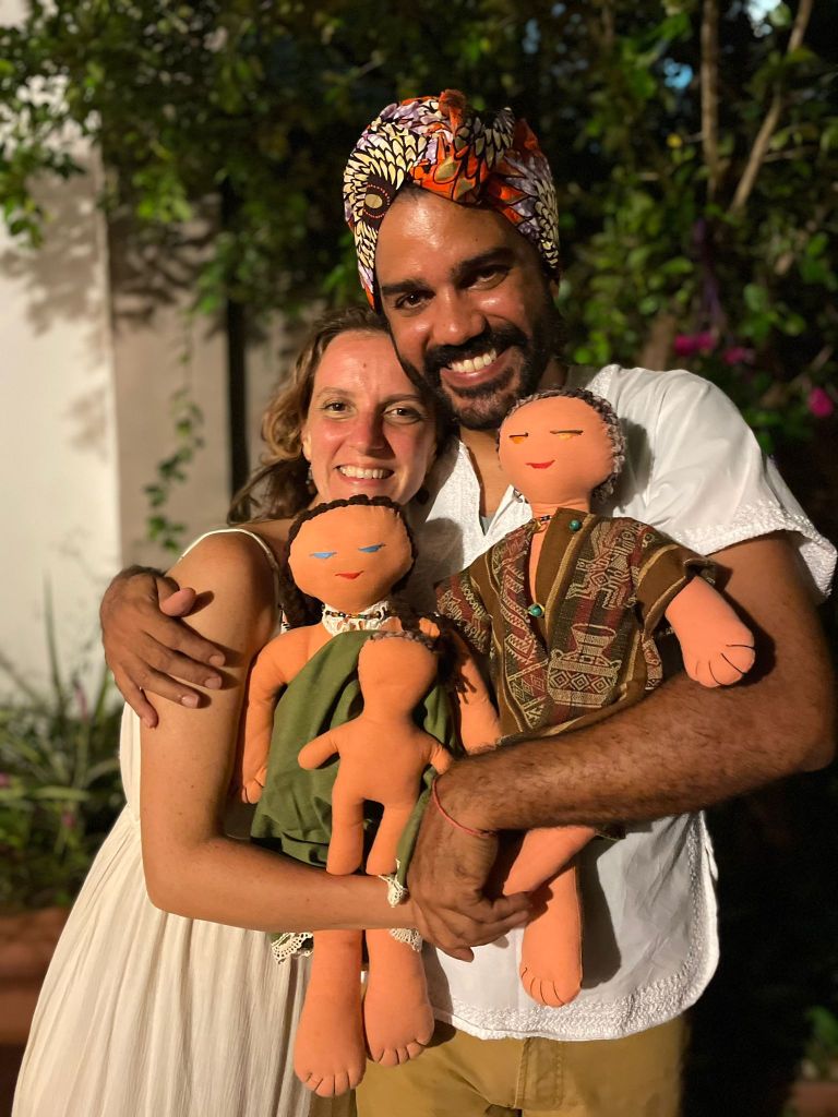 Pero también las PachaMamaBebé son 4 razas y 5 Diosas. Cuenta la profecía Hopi que cuando la raza negra, roja, amarilla y blanca se unan en Amor, Respeto y Agradecimiento a la Madre Tierra nacerá la quinta raza. Además, cada una de ellas responde a una divinidad para recordar los orígenes ancestrales de las culturas matrísticas donde se honraba a las mujeres como Diosas. Así, Yemayá es la Diosa afrocaribeña de la raza negra, Ixchel es la Diosa Maya de la raza roja, Amaterasu es la Diosa japonesa de la raza amarilla y Venus de Willendorf es la Diosa europea de la raza blanca. Quisimos crear la quinta Diosa, Atabey, nuestra Diosa Taína de la fertilidad de la raza arcoiris, como mezcla de las 4 razas y metáfora de nuestra identidad boricua.